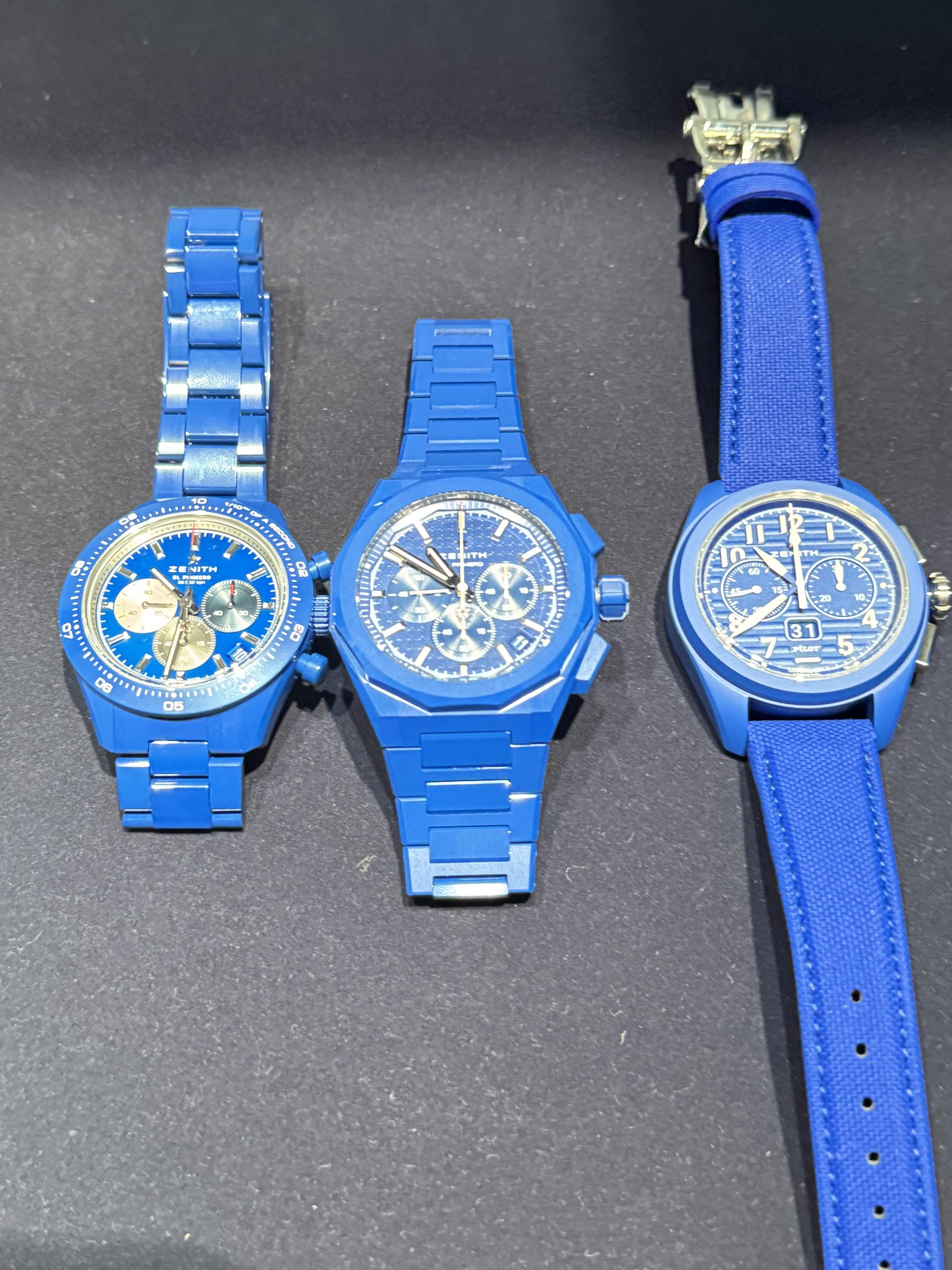 Zenith chose to launch three versions of its high-frequency chronographs – its Chronomaster Sport, Defy Skyline Chronograph and Pilot Chronograph – in vibrant “Zenith blue” ceramic, a colour it plans to double down on, going forward. The precise blue is Pantone 661C – also used by the United States Airforce Academy, the University of Pittsburgh and Cos for t-shirts – FYI. |