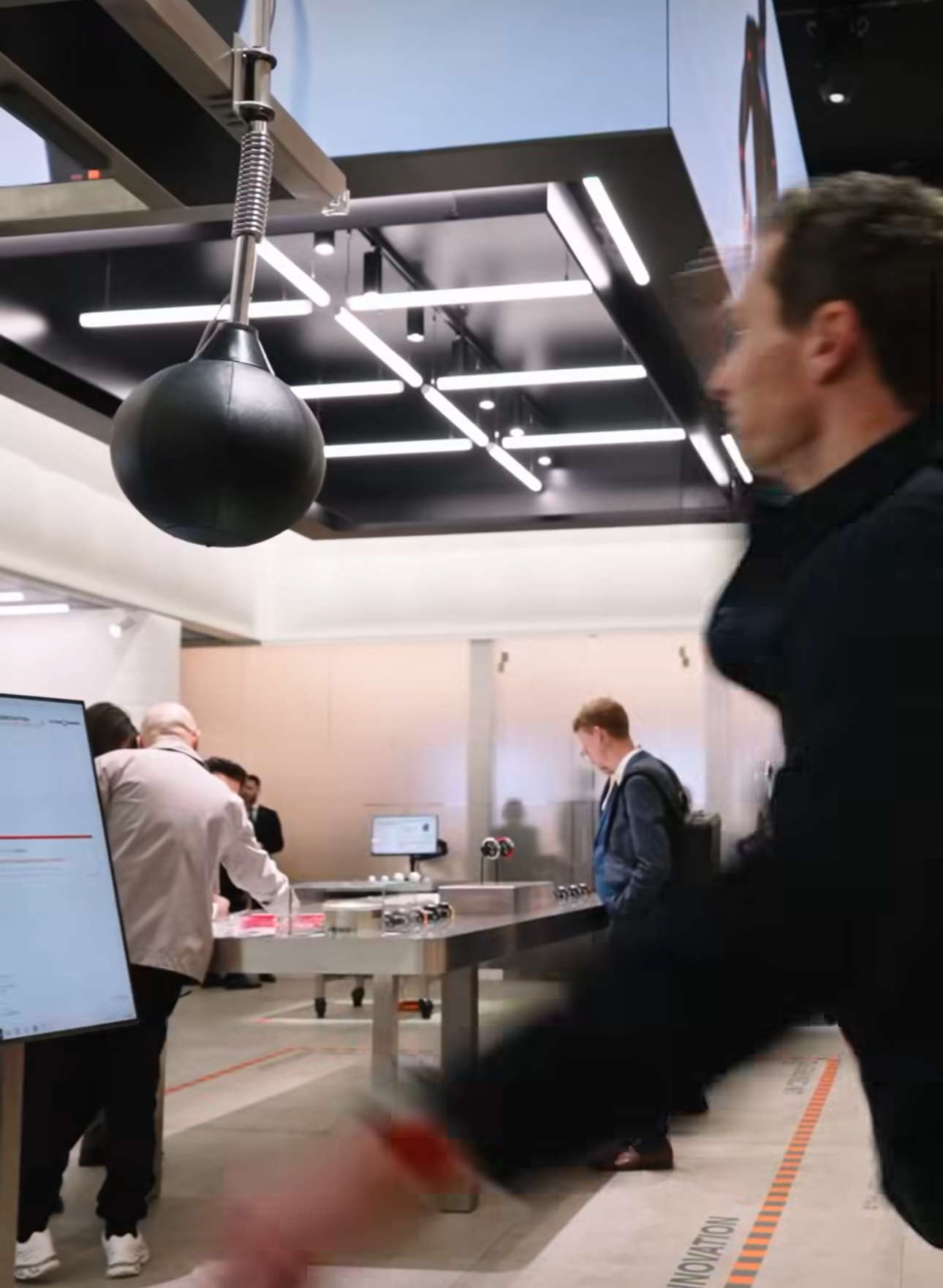 Avant-garde watchmaker Ulysse Nardin devised an innovative method to test the durability of its new Diver [AIR], a 52g skeletonised high-horology piece crafted from titanium and carbon fibre, claimed to be the lightest dive watch in the world. They secured it to guests' wrists and invited them to demonstrate their strength on a punch bag hanging from the ceiling of their booth. |