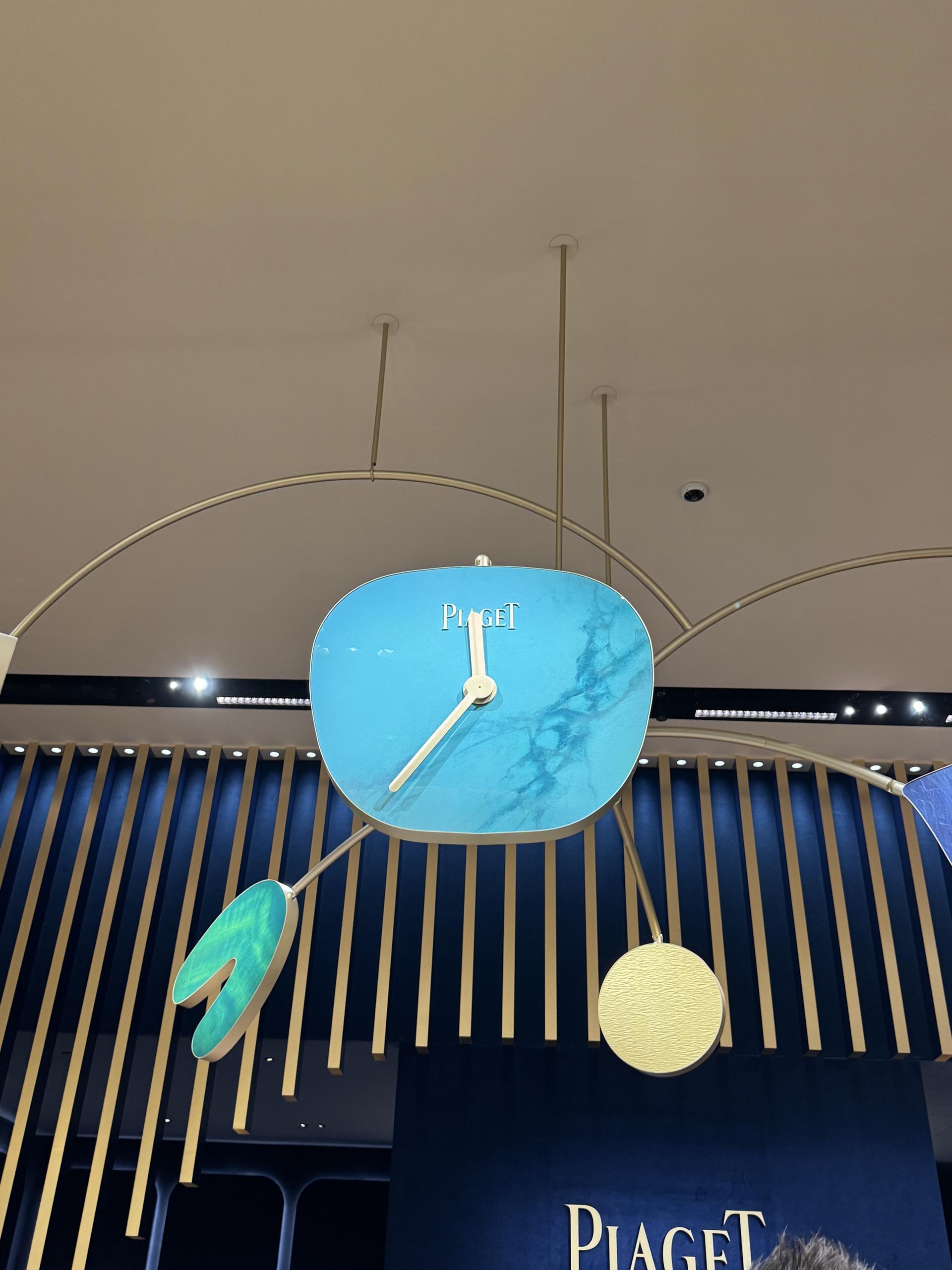 Another huge clock hung over the Piaget booth, part of a mobile that riffed on the brand’s love of colour and shape. (This one wasn’t for sale.) “The clock was actually made by the brand’s watchmakers,” a person from Piaget informed us. “So, it keeps very good time.” |